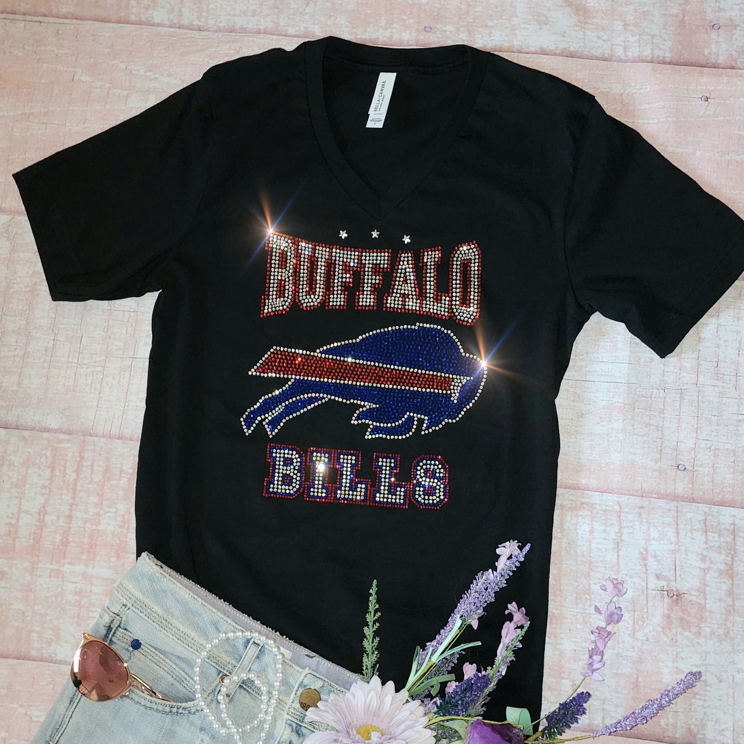 Bling Detroit Lions UNISEX V-Neck OR Crewneck Black T-shirt Rhinestone Detroit Lions Women's Shirt
